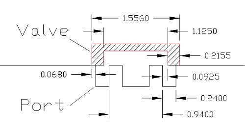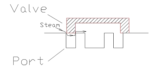 In fact, the end faces of the valve are narrower than the ports (ports are 0.24" wide, the valve lands are only 0.216" wide) so for part of the valve travel the ports would be open to both steam and exhaust and steam would escape straight from the steamchest to the exhaust port!