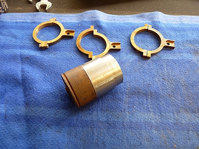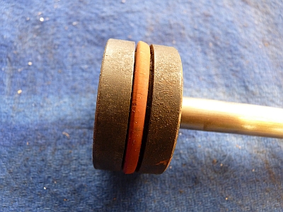The pistons are about 0.035" too small in diameter to fit the bores so I'll be replacing those. Don't know if that was intended or just the result of poor machining. They are fitted with silicon O rings which are very badly worn and need replacing. Silicon is not the best material for piston rings so they will be replaced with Viton. Ideally, it would be nice to fit proper cast iron rings but I don't want to go to all the trouble of making some.