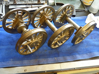 There may be another problem besides the valves. The Firefly valve gear was designed to suit ports that were 0.15625" wide but the ports on these cylinders are 0.24" wide. Unless the throw of the eccentrics has been increased to suit the wider ports the valve travel will be insufficient. That may be why the valves have very little lap as there isn't enough valve travel to give the required lap. I obviously need to check the throw of the eccentrics. I'm beginning to think that whoever built or modified this loco hadn't any real idea of what they were doing! Why do I always seem to finish up with everyone elses crap? 01/06/2015 Yesterday I replaced all the crankpins in the wheels with new ones made from 10mm silver steel. Three of the originals could have been used again but I thought I may as well change all 6 while I was at it. The old ones were Loctited in but were easy to tap out with a punch once the pins had been heated to blue with the gas torch. The new ones were Loctited back in which reminds me that my stock of retaining compound is getting very low.