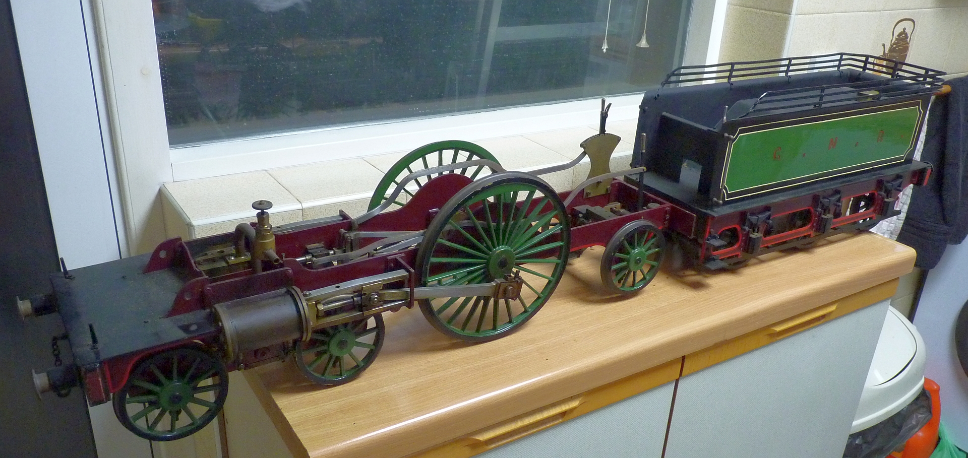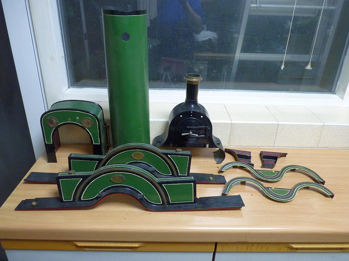 09/03/2019 Well, another project followed me home from the club last Thursday! Friend Bob from the club phoned me up on Monday evening and asked if I could help him with a job. I thought he was going to ask me to help him do something at his house but no. He explained that some years ago he had done a job for somebody and when finished the chap had told Bob that he hadn't any money to pay him! Instead he offered Bob a locomotive that his Grandfather had built and Bob thought that that was better than nothing so took it. Bob told me that it was a 5" gauge Stirling Single which sounded interesting. Bob thought that it was all there but in pieces. The chassis was complete, as was the tender. There was a boiler and a cardboard box with all the platework and a few other bits. Bob thought that it mainly wanted just putting back together and a bit of pipework doing. I agreed to have a look at it and Bob brought it to the club. After a quick look I put it in the back of the car and brought it home. The chassis is more or less complete and so is the tender. The boiler is all there but needs soldering together and staying.